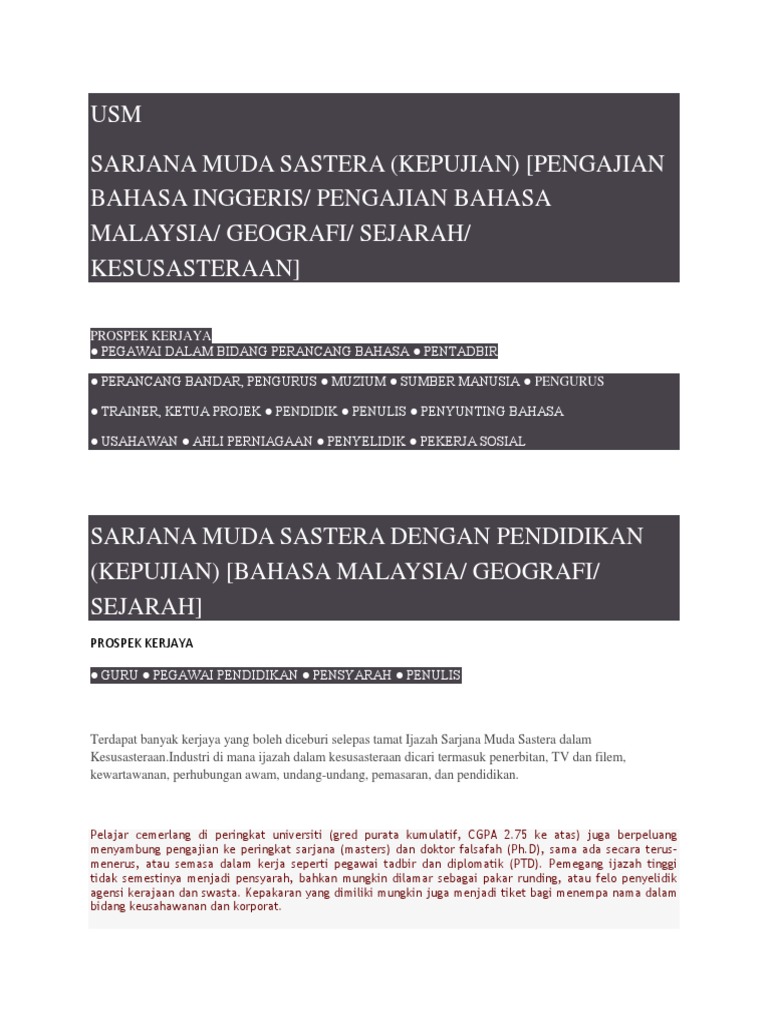 Ilmu sejarah yang kamu miliki juga akan terus berkembang karena kamu masih aktif di bidang pendidikan ini. Pelbagai peluang kerjaya disediakan untuk graduan pergigian. Kajian ini menumpukan perhatian kepada pencapaian yang diperoleh oleh sekolah pada peringkat zon, daerah dan negeri. Kerjaya bidang seni bina sinopsis: Kerjaya ini sesuai untuk bidang sains sosial bagi kursus sejarah.
